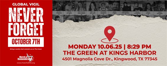 Join us at the Holocaust Garden of Hope for a global prayer vigil organized by the international March of Life movement in commemoration of the anniversary of the October 7 attacks in Israel.
